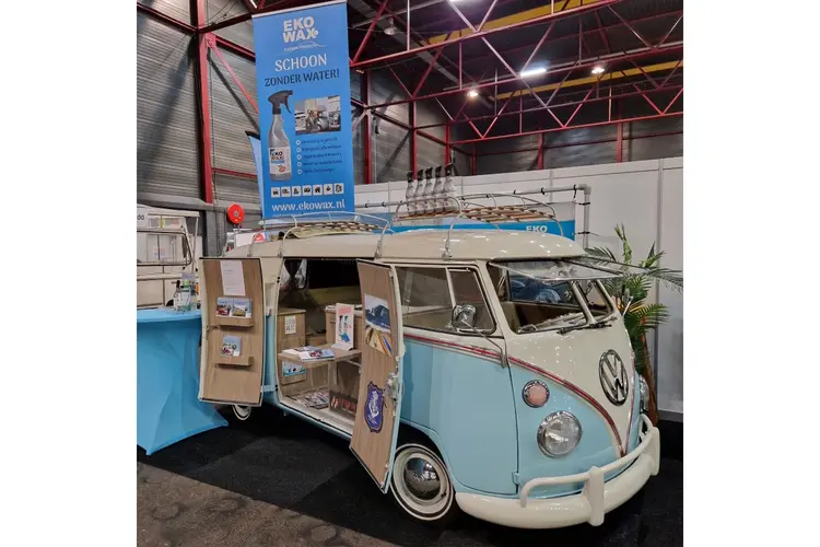 LEEUWARDEN - Al vele jaren heeft Noord Nederland zijn eigen kampeerbeurs, genaamd de Caravana in Leeuwarden. Ook Ekowax Cleaning Products is hier weer aanwezig met een fraaie stand, met ditmaal een schitterende gerestaureerde VW T1 met kampeer uitrusting van Vintage Ride uit Workum op de stand.