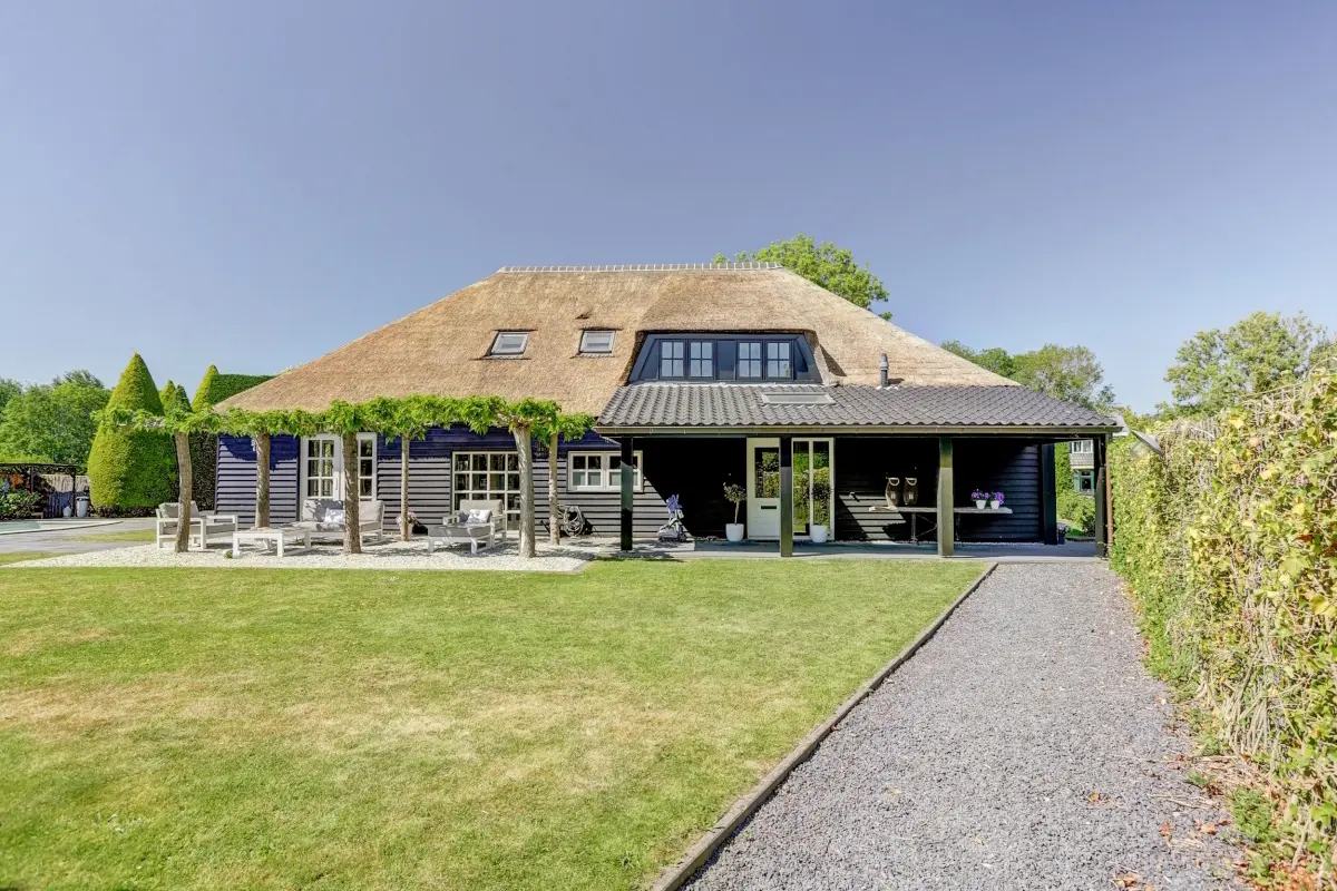 • Vrijstaande rietgedekte woonboerderij op royaal perceel van ca. 1.150 m²• Compleet verbouwd in 2022: o.a. nieuwe vloeren, strak stucwerk, modern sanitair en keuken• Luxe zwarte woonkeuken (2022) met kookeiland, natuurstenen werkblad en wijnklimaatkast• Twee volledig vernieuwde badkamers (2022) met o.a. inloopdouches, houtlook meubels en dubbele waskommen• Begane grond met slaapkamer en en-suite badkamer met infrarooddouchepaneel• Nieuwe toiletruimte (2022) met warme houtaccenten en nisjes• Eerste verdieping met vier slaapkamers en tweede badkamer;• Tweede verdieping met extra slaap-/werkkamer en bergruimte• Rieten kap opgeknapt in 2025• Woning rondom geschilderd in 2025• Buitenkeuken in 2024 volledig opnieuw betegeld en voorzien van nieuwe bar• Verwarmd ovaal zwembad (8 x 4 m) met nieuwe pomp (2025), afdekzeil en automatische reiniger• Vrijstaand kantoor met eigen keuken, toilet en vliering – ideaal als praktijk, studio of gastenverblijf• Grote vrijstaande schuur op separaat perceel (19a) – perfect voor hobby, opslag of werkruimte• Prachtig aangelegde tuin met veranda, meerdere zonneterrassen en volledige privacy• Vloerverwarming in de gehele woning én het bijgebouw• Centrale ligging nabij voorzieningen, openbaar vervoer en uitvalswegen• Energielabel A• Woonoppervlakte woning: ca. 264 m², Bijgebouw: ca. 32 m²• Gebruiksoppervlakte overige inpandige ruimte: ca. 10 m²• Inhoud woning: ca. 959 m³, Bijgebouw: ca. 144 m²• Externe bergruimte (schuur): ca. 147 m²• Perceeloppervlakte: ca: 1150 m²Meer weten?